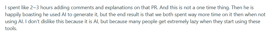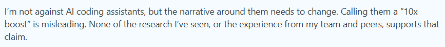 What changes with AI: AI compresses the front end of the process. Code gets written faster and repetitive tasks take less time. But lead time includes the full path to production, and AI doesn’t touch most of that. Reviews, tests, and sign-offs still take time, and sometimes take longer when teams are less sure about AI-generated output. Here’s how this Reddit engineer put it: