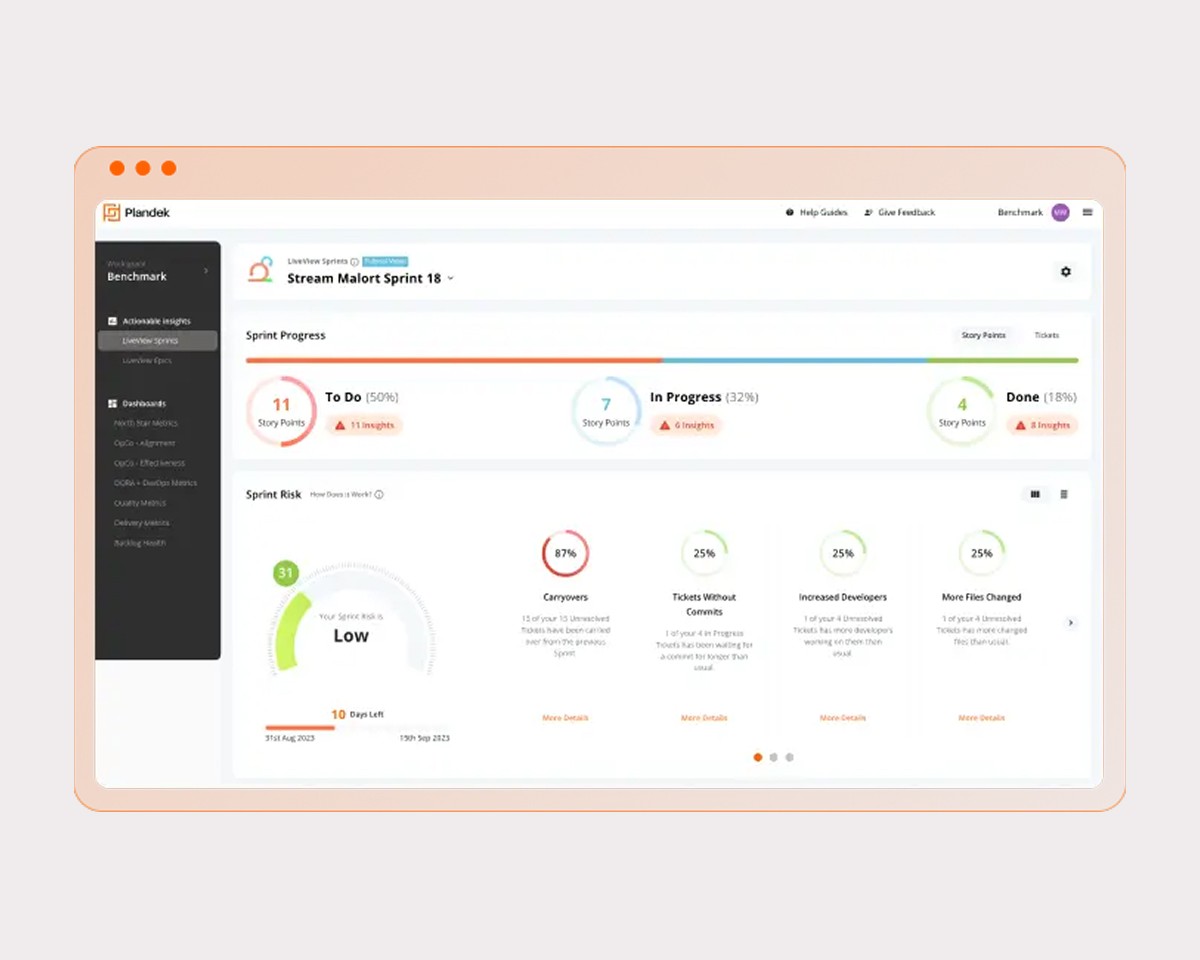 Plandek connects the dots across the entire SDLC and provides teams, managers and technology leaders with engineering insights to drive performance improvement and accelerate value delivery. Build your first report in minutes!