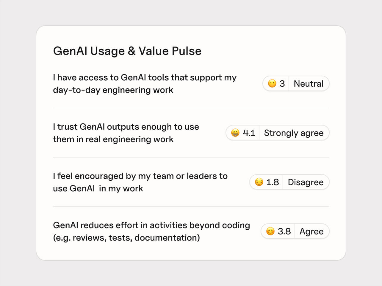 Identify friction, reduce burnout, and take action to create an environment where developers can focus, move faster, and deliver their best work.